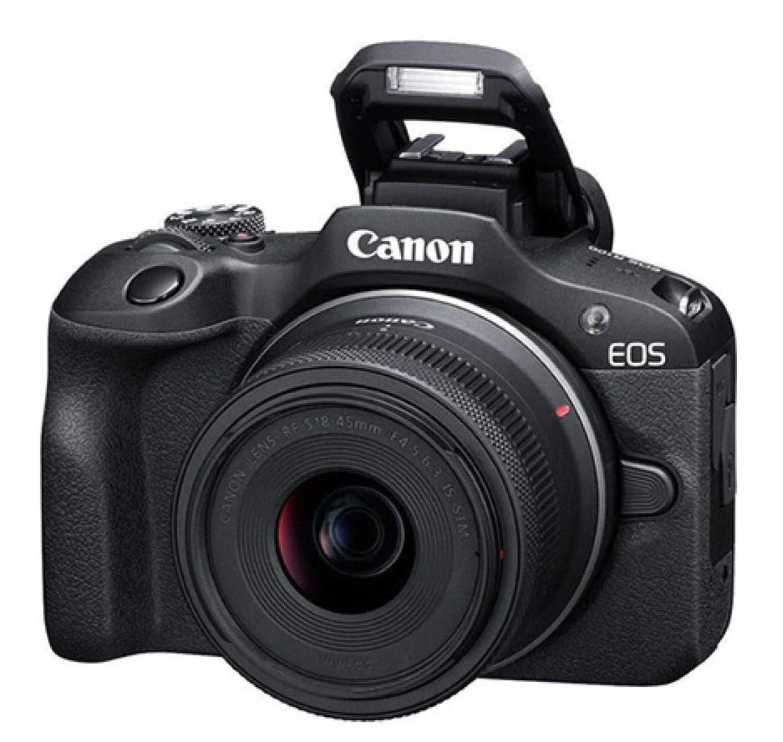 📦 Includes: Canon R100 body + RF-S 18–45mm lens